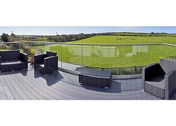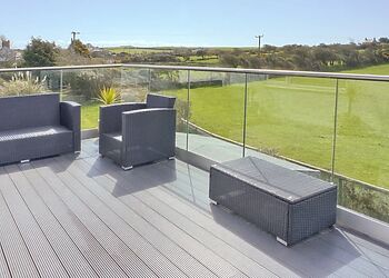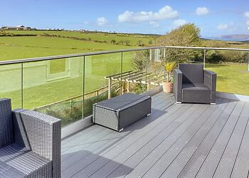 - Glass-panelled balcony overlooking countryside