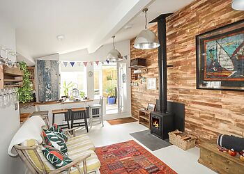 - Woodburning stove and open-plan living